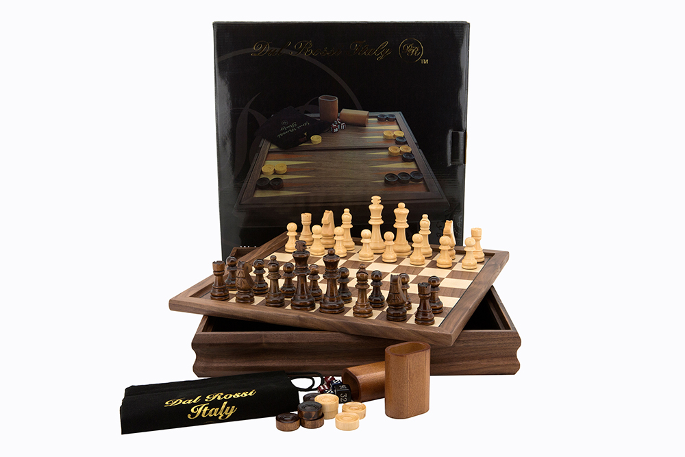 Flip Top Chess, Checkers, Backgammon. 14' with Walnut Finish