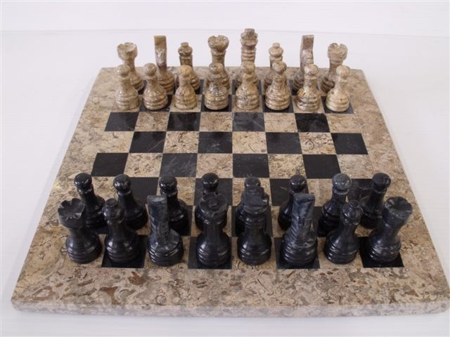 Onyx 12" Chess Set - Fossil & Black Onyx Chess Pieces