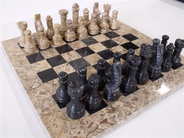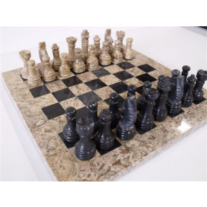 Onyx 12" Chess Set - Fossil & Black Onyx Chess Pieces