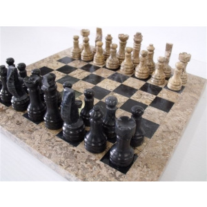 Onyx 12" Chess Set - Fossil & Black Onyx Chess Pieces-192