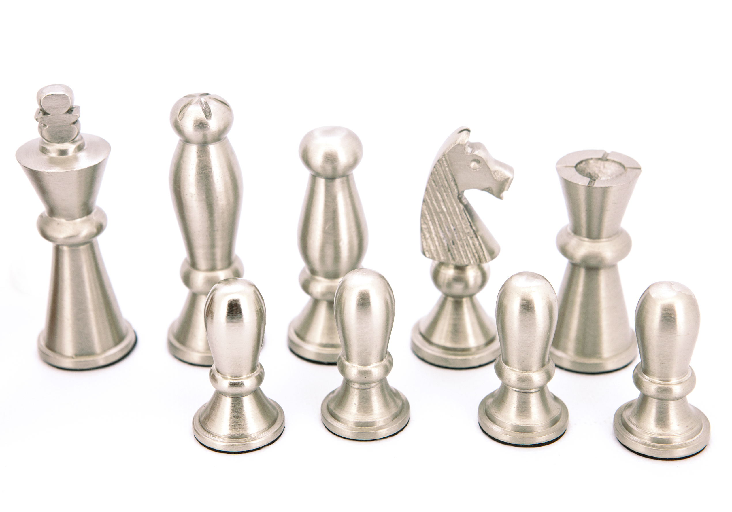 Dal Rossi Italy Chess Set Walnut Finish 20″ With Two Drawers, With Copper & Silver Weighted Metal Chess Pieces 85mm pieces