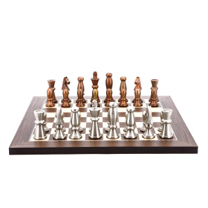 Dal Rossi Italy Chess Set Flat Palisander/Maple Board 40cm, With Copper & Silver Weighted Metal Chess Pieces