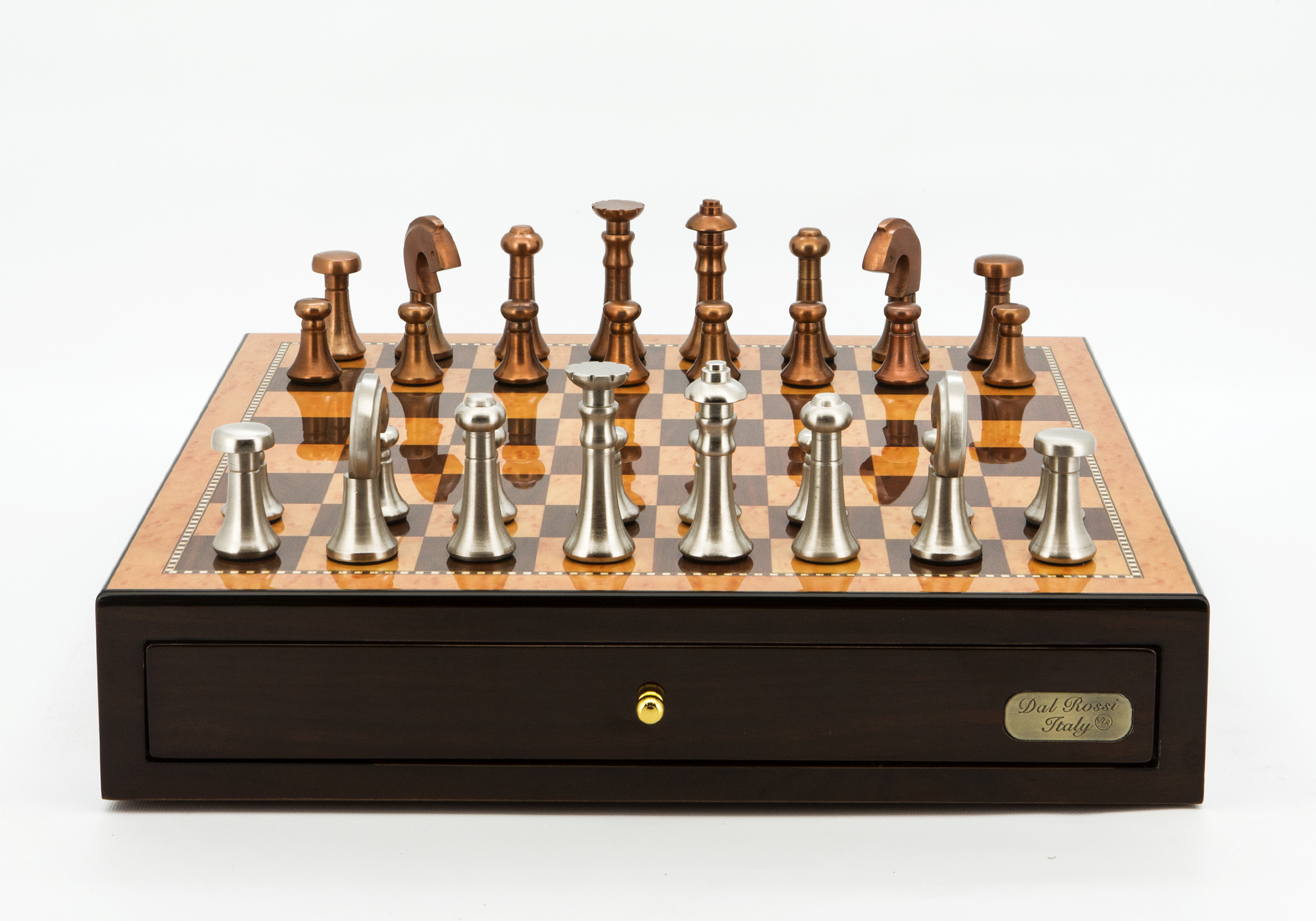 Dal Rossi Italy Chess Set Walnut Finish 18" With two Drawers, With Metal Copper and silver Chessmen 80mm