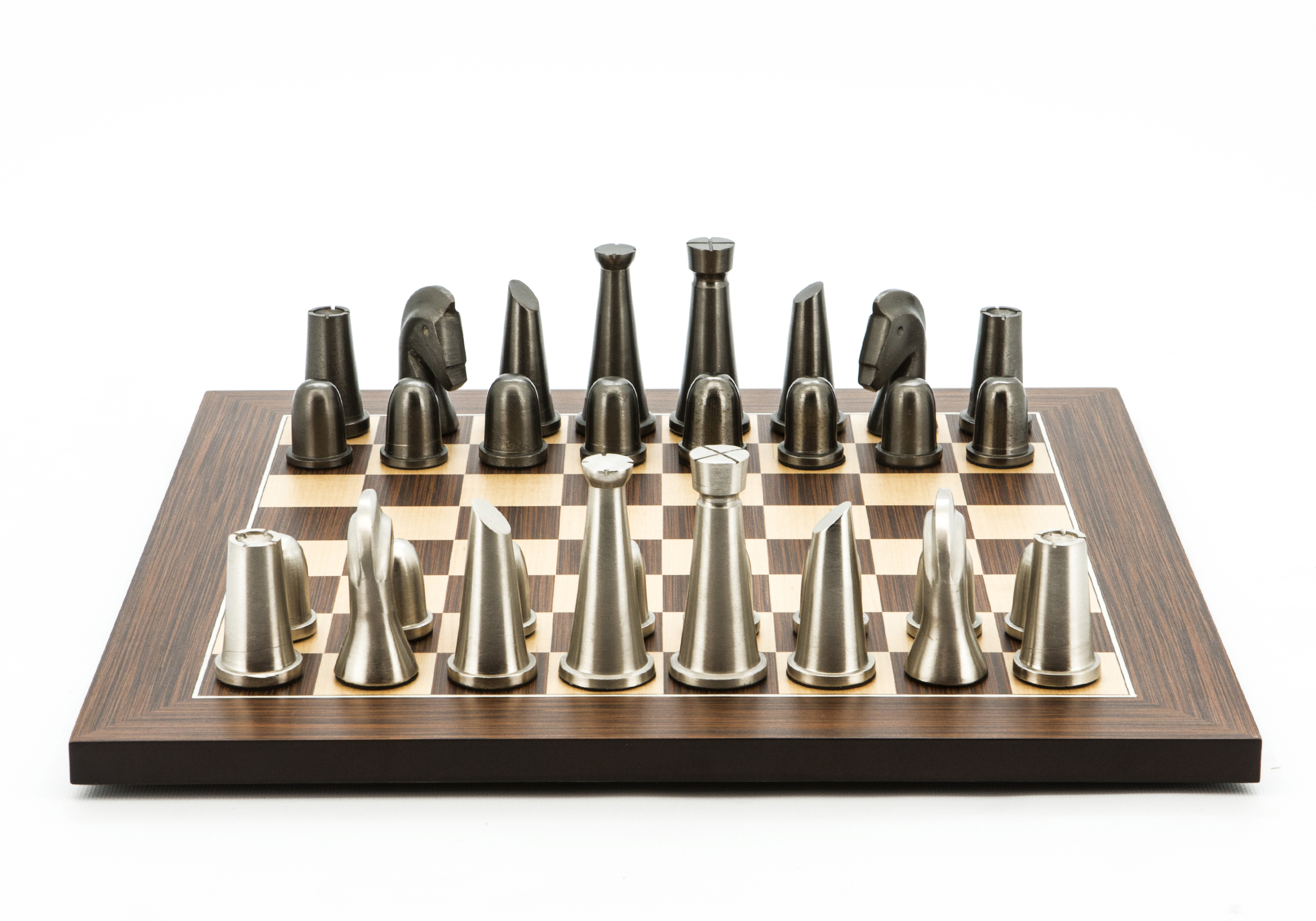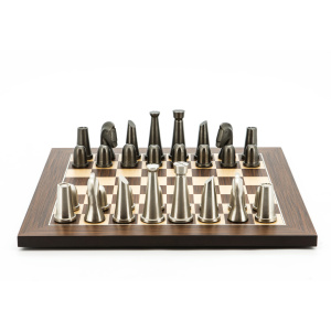 Dal Rossi Italy Chess Set Palisander / Maple Flat Board 40cm, With Metal Dark Titanium and Silver chessmen 85mm