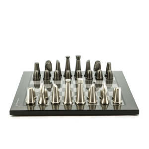Dal Rossi Italy Chess Set Flat Carbon Fibre Board 40cm, With Metal Dark Titanium and Silver chessmen 85mm