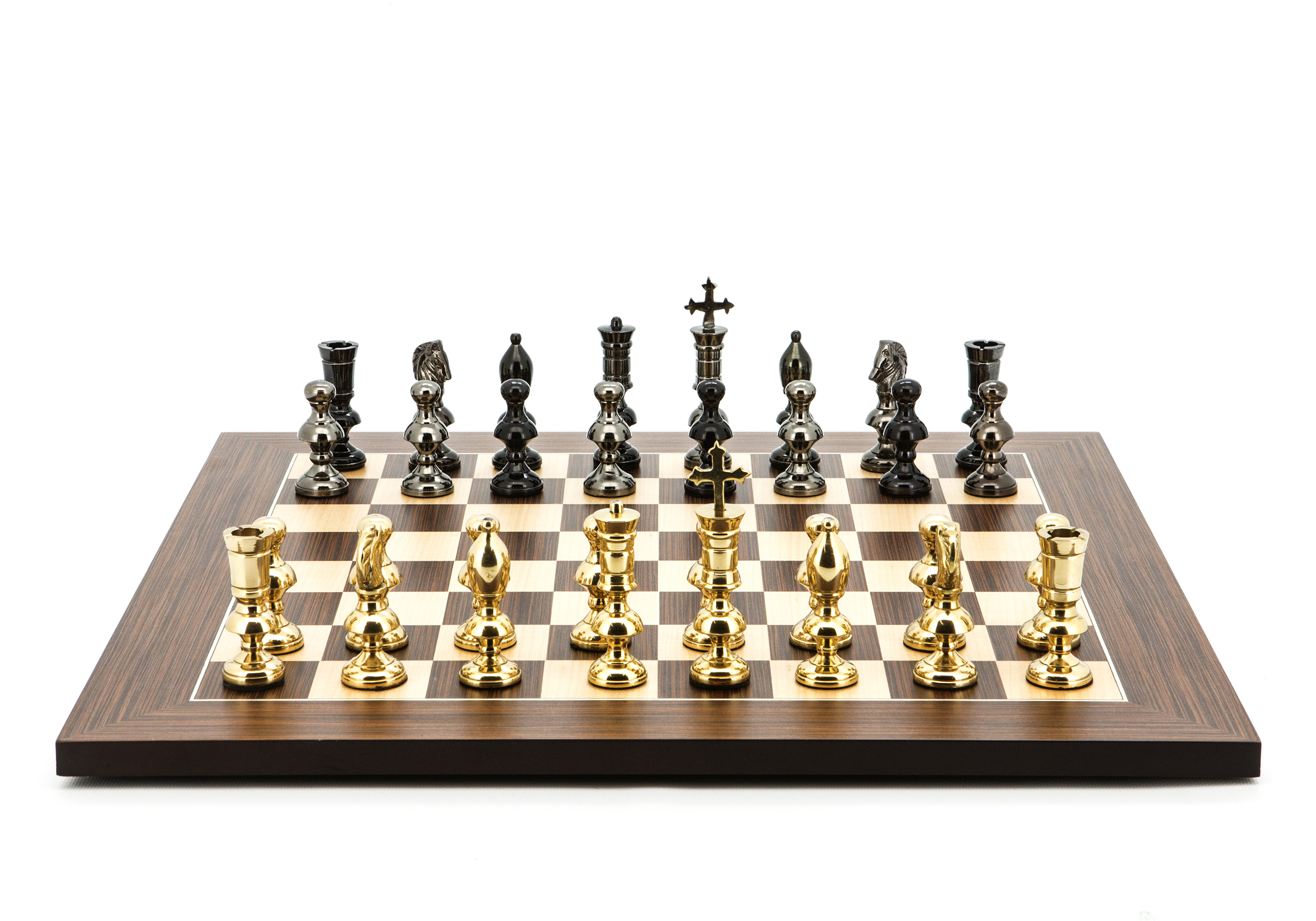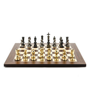 Dal Rossi Italy Chess Set Palisander / Maple Flat Board 50cm, With Metal Dark Titanium and Gold Chessmen 110mm