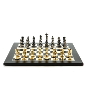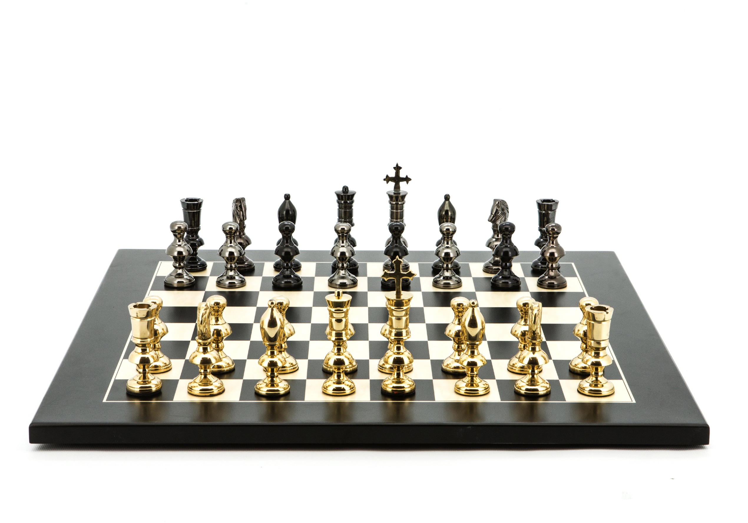 Dal Rossi Italy Chess Set Flat Black/Erable Board 50cm, With Metal Dark Titanium and Gold Chessmen 110mm