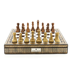 Dal Rossi Italy Chess Set Mosaic Shinny Finish 20″ With Compartments, Brown and Box Wood Grain Finish Chess Pieces 110mm