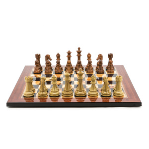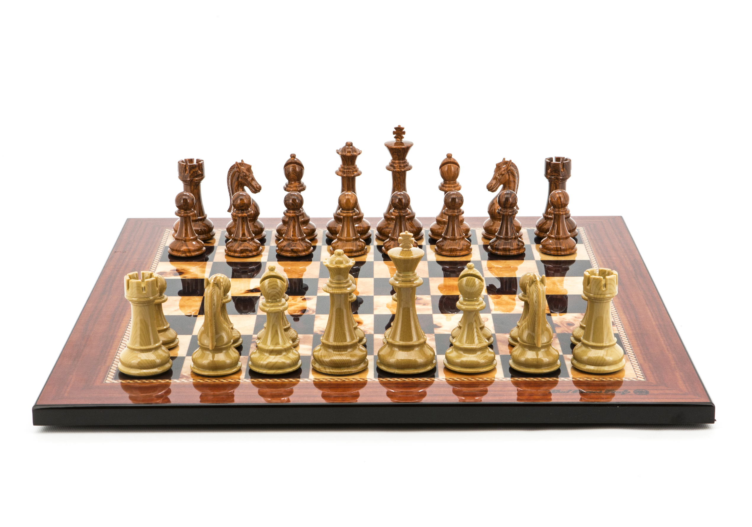 Dal Rossi Italy Chess Set Flat Walnut Shinny Finish Board 50cm, Brown and Box Wood Grain Finish Chess Pieces 110mm