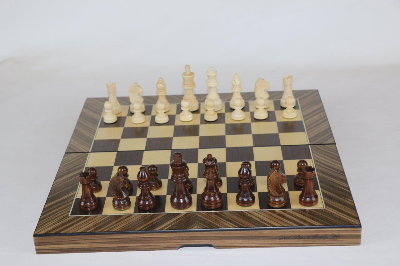 Dal Rossi Palisander / Boxwood Finish Folding Chess Set, 16" NEW