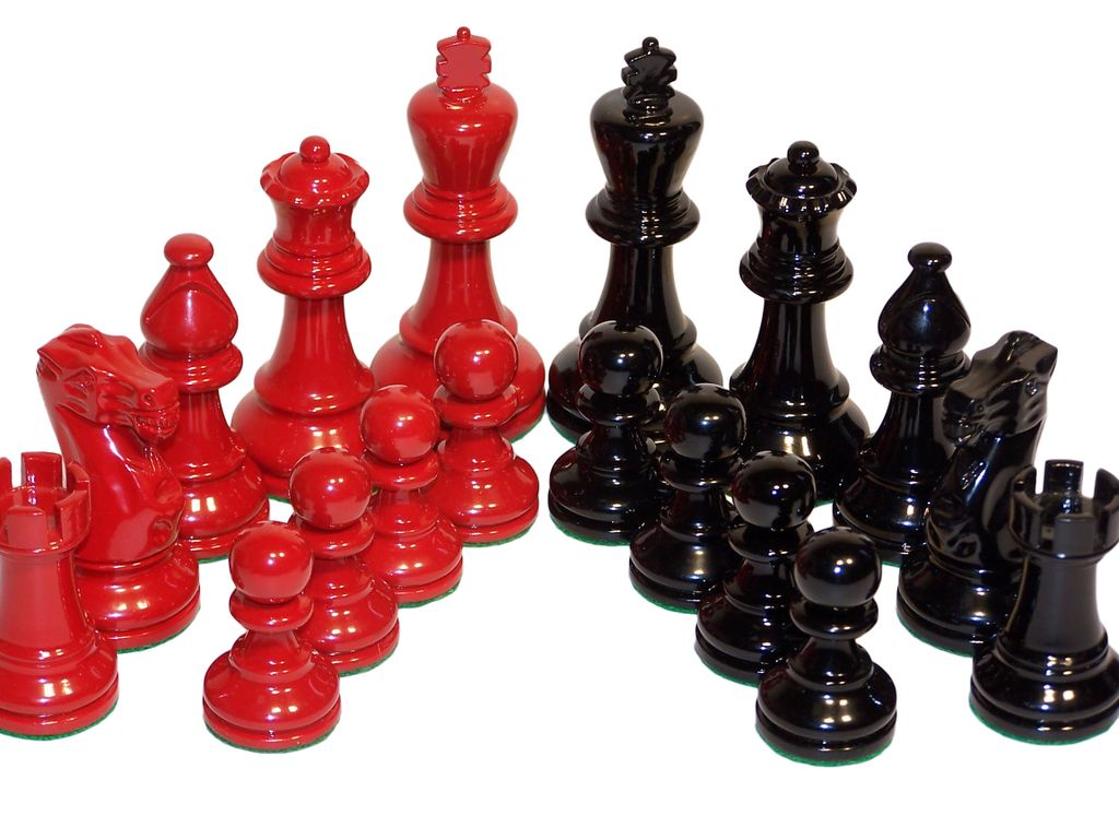 Chess Pieces – Classic Jaques Boxwood,red & black, 85mm Wood Double Weighted