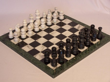 Chess set, Marble, Black &White, Green edge, 16 Marble