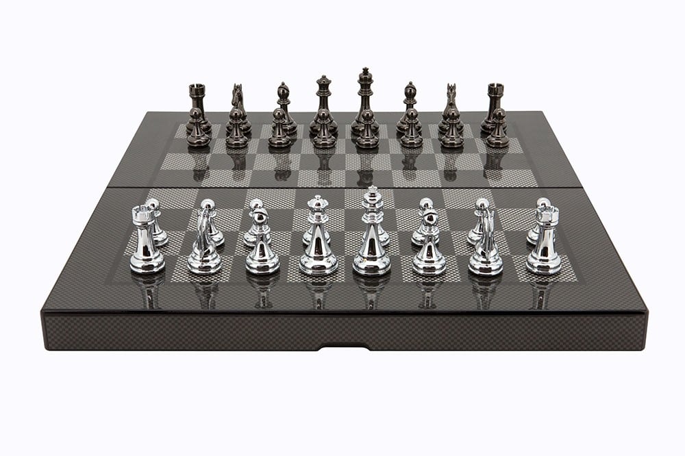 Dal Rossi Carbon Fibre Finish Folding Chess Set, 16″ -0
