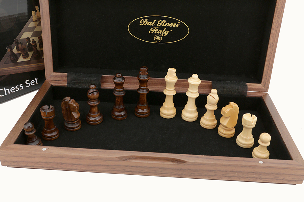 Dal Rossi Ches Set Folding, walnut inlaid, 12″ -1252