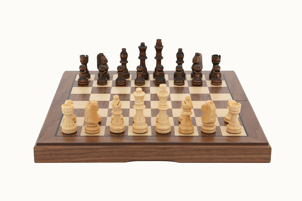 Dal Rossi Ches Set Folding, walnut inlaid, 12″ -1254