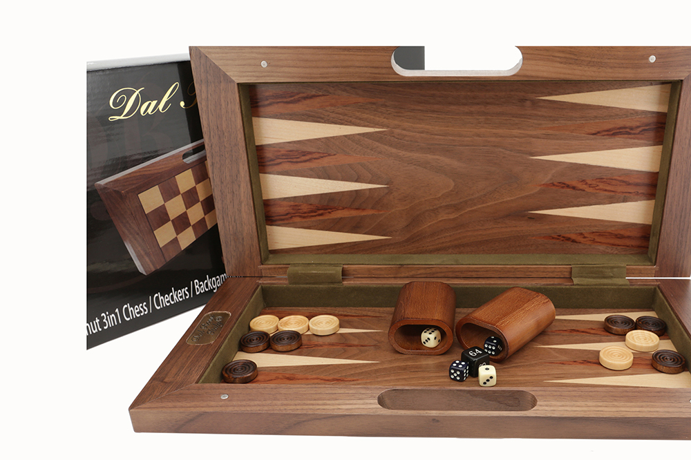 Dal Rossi Chess / Checkers / Backgammon,folding walnut, 16″ -1261
