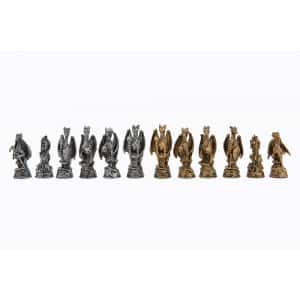 Dal Rossi Italy Black PU Leather Bevilled Edge chess box with compartments 18″ with Dragon Pewter 80mm Chessmen. Product code: L40223DR-1603Hussain2021-09-25T09:12:35+00:00