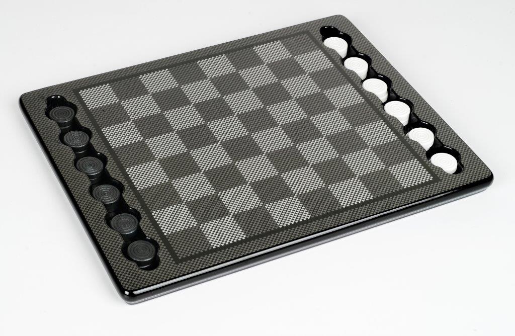 Dal Rossi Italy Carbon Fibre Finish Checkers Set, board and pieces-0