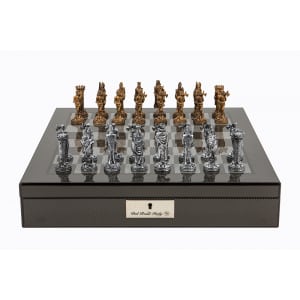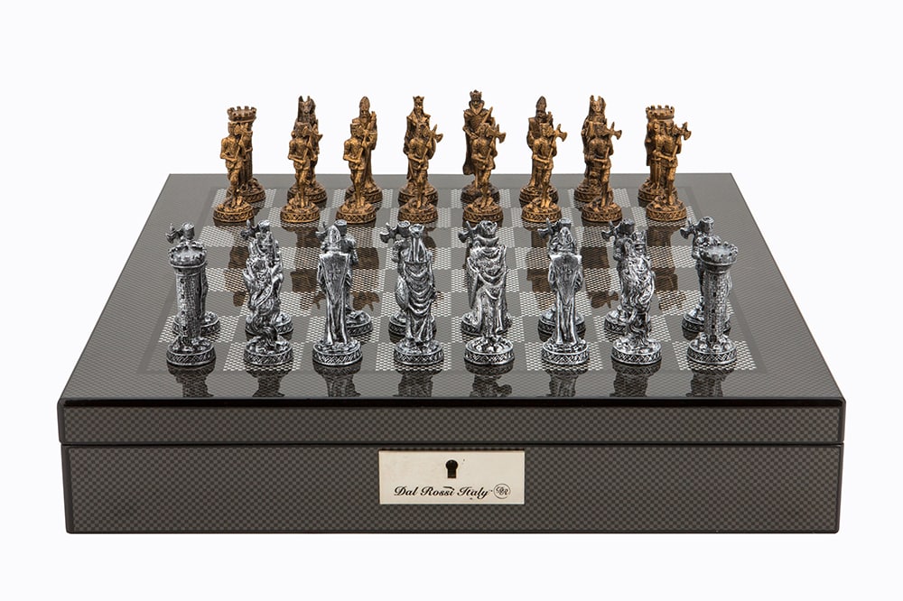 Dal Rossi Italy Carbon Fibre Shiny Finish chess box with compartments 16” with Medieval Pewter 80mm Chessmen – L44222DR-0Hussain2021-09-25T09:12:07+00:00