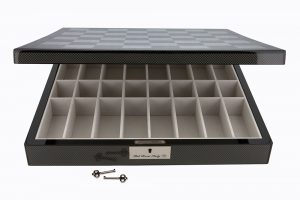 Dal Rossi Italy Carbon Fibre Shiny Finish chess box with compartments 16” with Medieval Pewter 80mm Chessmen – L44222DR-1423Hussain2021-09-25T09:12:07+00:00