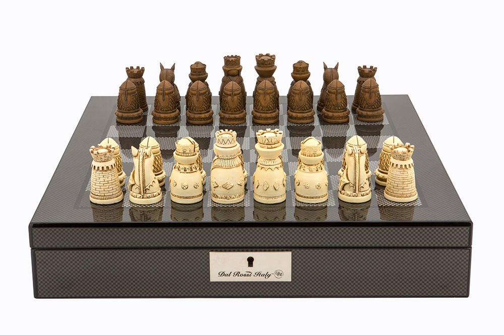 Dal Rossi Italy Carbon Fibre Shiny Finish chess box with compartments 16” with Medieval Resin Chessmen – L4406DR-0Hussain2021-09-25T09:12:10+00:00