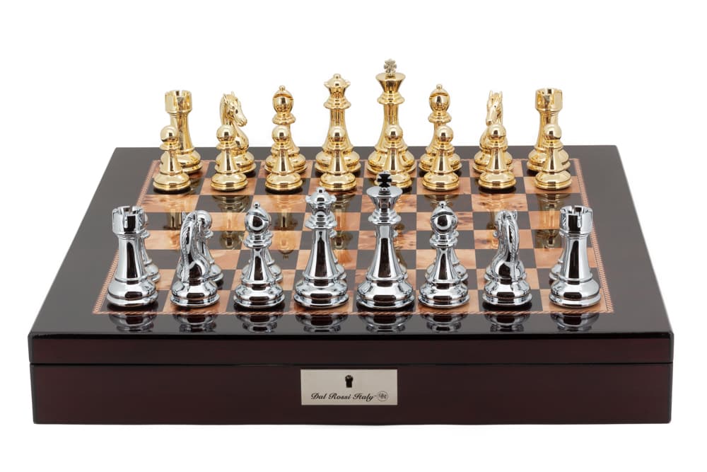 Dal Rossi Italy Chess Box Mahogany Finish 20″ with compartments Gold and Silver 101mm Double Weighted Chess Pieces -0Hussain2021-09-25T09:13:40+00:00