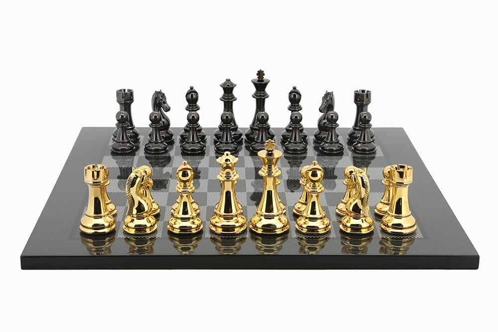 Dal Rossi Italy Chess Set, 50cm Carbon Fibre Finish Chess Board With Gold and Silver Weighted Chess Pieces (101mm) PLEASE NOTE CHESS PIECES ARE GOLD AND SILVER-0