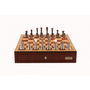 Dal Rossi Italy, Contemporary Chess Set with drawers 18″ (Red Mahogany Finish) with Contemporary Pewter Chess Pieces-1215