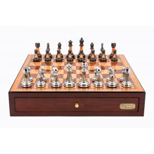 Dal Rossi Italy Red Mahogany Finish chess box with compartments 18” with Metal/Marble Finish 95mm Chessmen – L4626DR-0Hussain2021-09-25T09:12:40+00:00