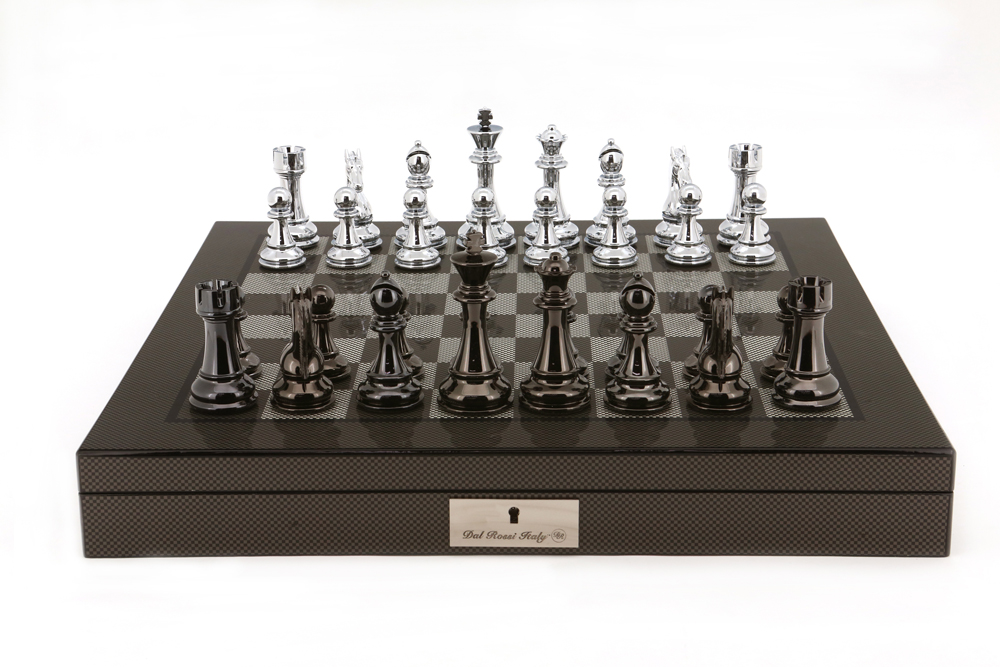 Dal Rossi Italy Silver/Titanium Chess Set on Carbon Fibre Shiny Finish Chess Box 20” with compartments-0Hussain2021-09-25T09:11:25+00:00