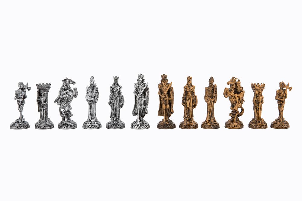 Dal Rossi Italy Walnut Finish chess box with lock & compartments 16” with Medieval Pewter 80mm Chessmen – L42222DR-1450Hussain2021-09-25T09:12:13+00:00