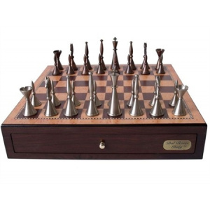 Dal Rossi Staunton Metal Chess Set with Drawers 18″ (Walnut Finish)