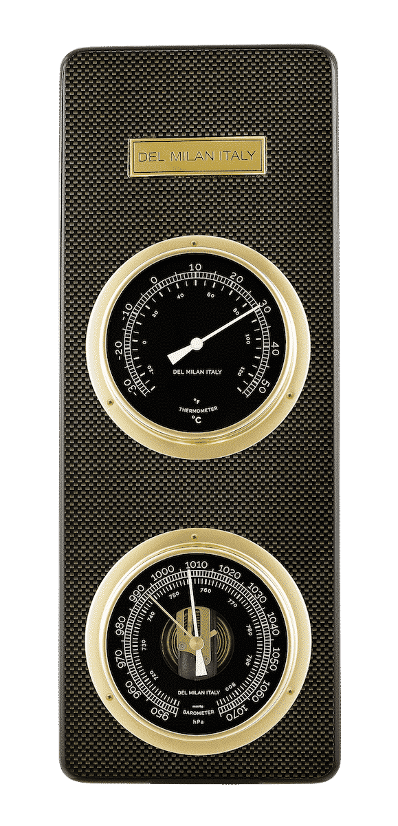 Del Milan 2 in 1 Barometer, Thermometer, Carbon Fiber Finish-0