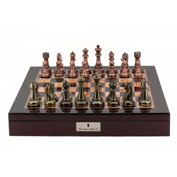 Dal Rossi Italy Chess Box Mahogany Finish 20″ with compartments Bronze & Copper 101mm pieces