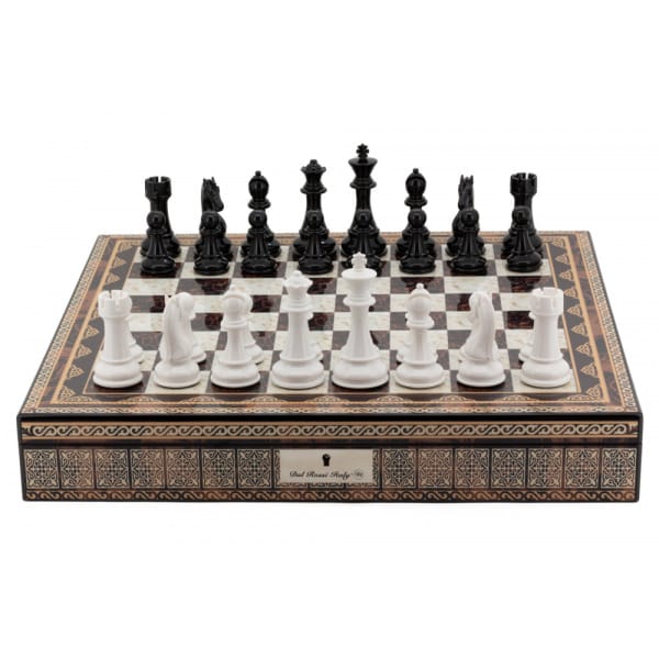 Dal Rossi Italy Chess Box Mosaic Finish 20″ with compartments with Black & White Finish 101mm Chess pieces