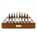 Dal Rossi Italy Walnut Wooden Chess & Checkers Set 15″ with drawers