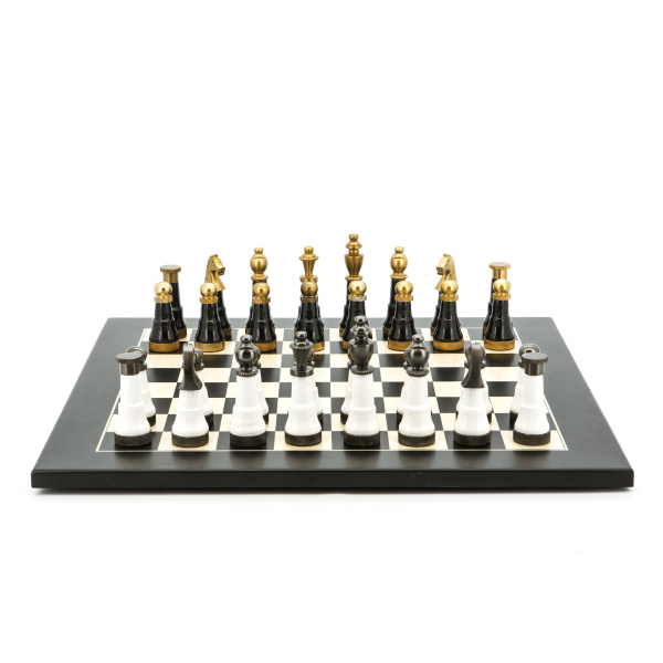 Dal Rossi Italy Chess Set Flat Black/Erable Board 50cm, With Black and White with Gold and Gun Metal Tops and Bottoms Chessmen 110mm