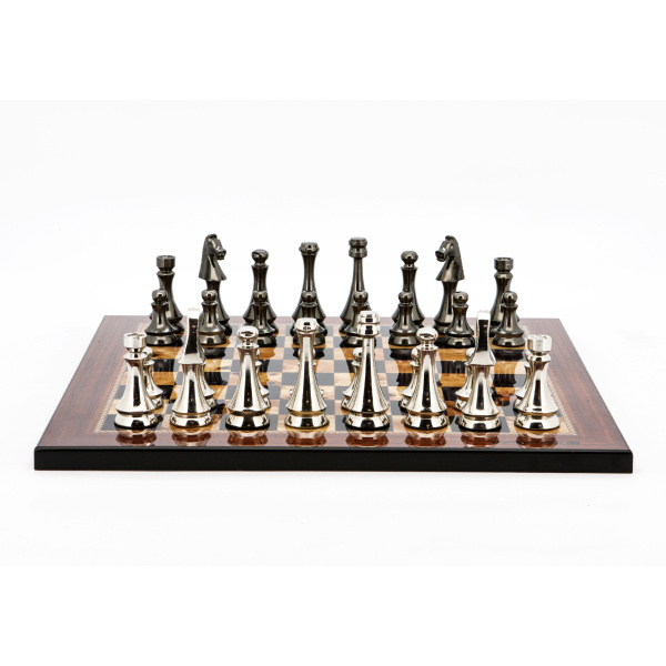 Dal Rossi Italy Chess Set Flat Walnut Finish Board 40cm, With Metal Dark Titanium and Silver chessmen 85mm