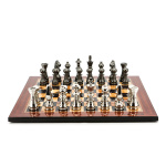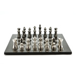 Dal Rossi Italy Chess Set Flat Walnut Finish Board 50cm, With Metal Dark Titanium and Silver chessmen 115mm