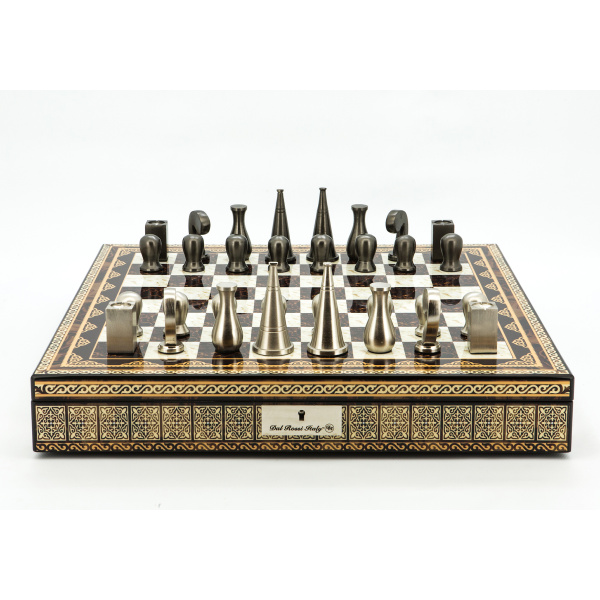 Dal Rossi Italy Chess Set Mosaic Finish 20″ With Compartments, With Metal Dark Titanium and Silver 90mm Chessmen