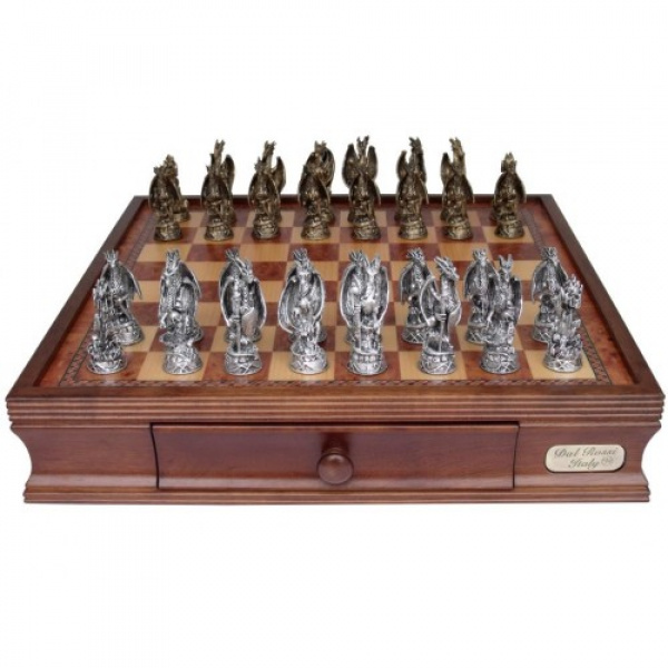 Dal Rossi Italy Metal & Wooden Staunton Chess Set with 40cm Chessbox with drawers – 2036DR