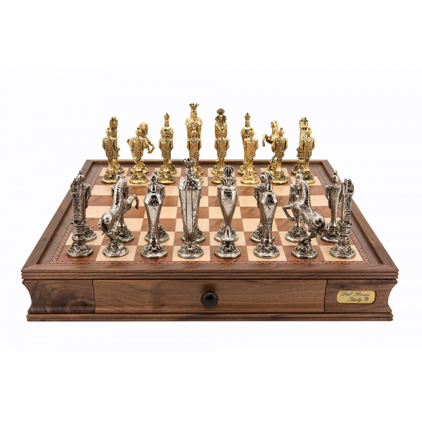 Dal Rossi Italy Walnut Wooden Chess & Checkers Set 15″ with drawers