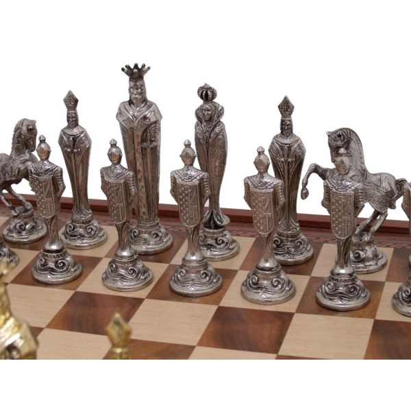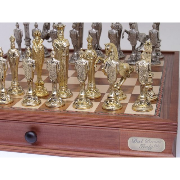 Dal Rossi Italy “Renaissance” Pewter Chess Set with 20″ Chessbox with drawers – 2023DR