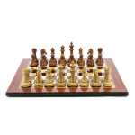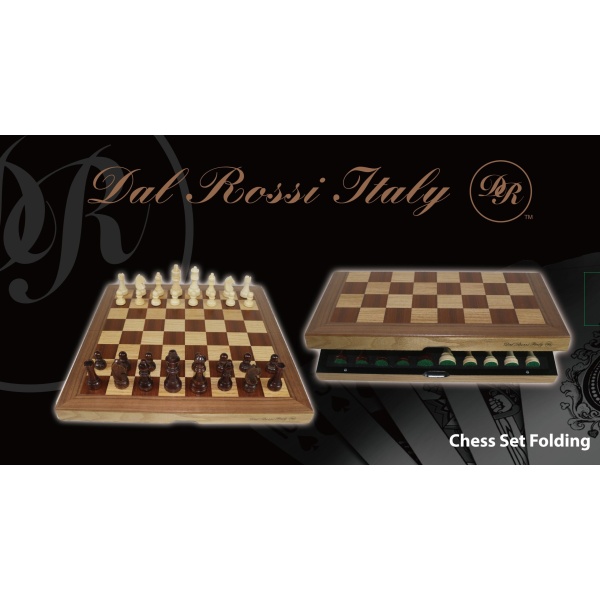 Dal Rossi Light Walnut / Boxwood Finish Folding Chess Set, 16″ NEW