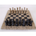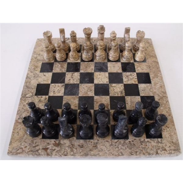 Onyx 12″ Chess Set – Fossil & Black Onyx Chess Pieces